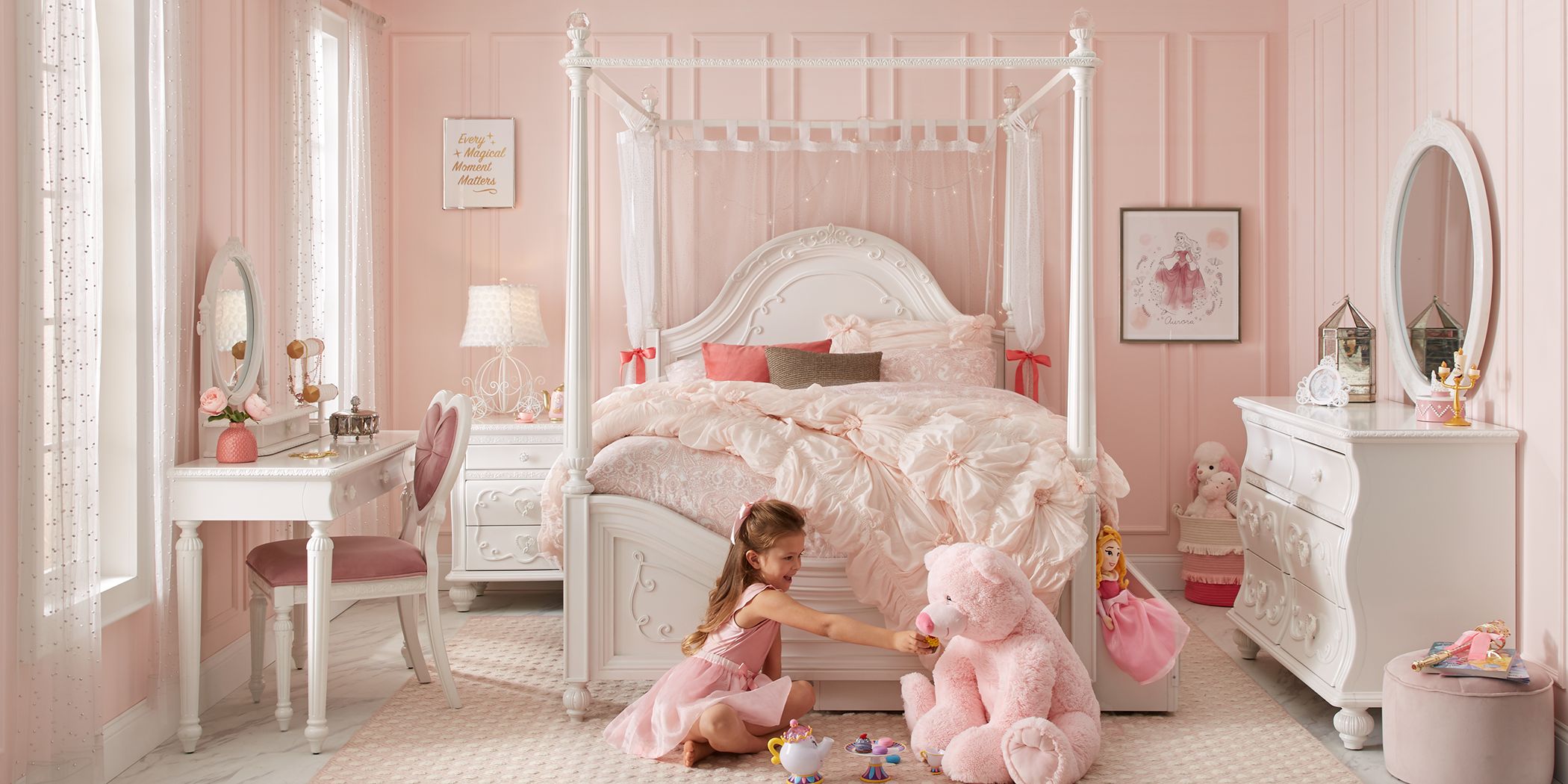 Princess Bedroom Set For Girls : Princess Bedroom Furniture Sets Novocom Top - The bedroom from steele street studios shown here demonstrates how well neutrals can work in a girl's bedroom.. Join your favorite disney princess characters on four fantastic adventures in this enchanting boxed set! Princess bedroom for the sims 4 by severinka_ available at the sims resource download a set of furniture and decor for decoration of the bedroom in a gentle sty. Feb 12, 2021 · there's no denying that many little girls love all things pink, but that doesn't mean a girl's room has to look like a bubblegum factory. Out of stock view product In a shared bedroom, repeat the same patterns from bed to bed and create a symmetrical setup.